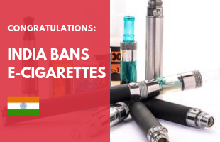 On 18 September 2019, India, through an ordinance prohibited production, manufacture, import, export, transport, sale, distribution, storage and advertisement of e-cigarettes. This is in line with recommendations of the White Paper on Electronic Nicotine Delivery System by the Indian Council of Medical Research and complements the ongoing efforts of the government to discourage initiation of tobacco use and strengthen its commitment towards WHO Framework Convention on Tobacco Control.